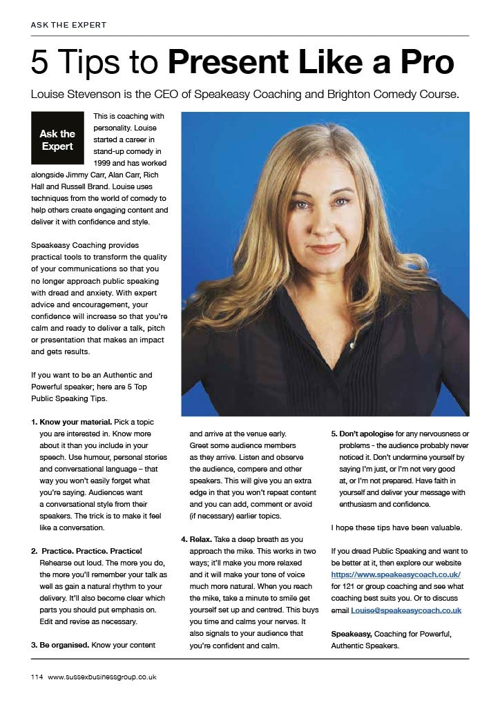 I’m Louise, the founder of Speakeasy Coaching. I began my career in stand-up comedy more than 25 years ago — and if you can make a room full of strangers laugh, you can handle just about anything. Since then, I’ve combined comedy with my work as a communications coach, keynote speaker, and author.